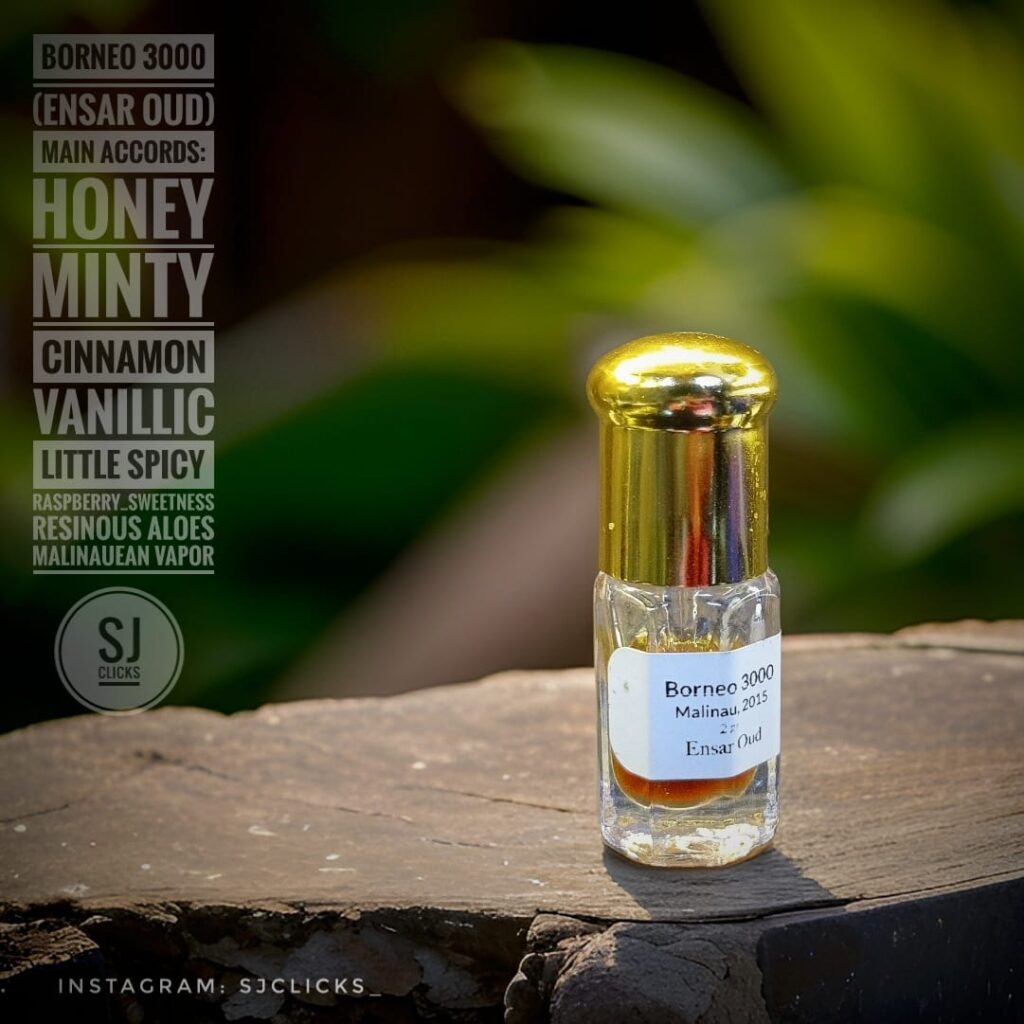 Borneo 3000 is the scent that shattered all notions of what oud was. You might have been around back when oud meant rotting leather, sheep droppings, and pungent barn. Come Borneo 3000, there was this sudden shine; this pristine, honey mint crystalline psychedelic scent that smelled like it could well be a controlled substance.