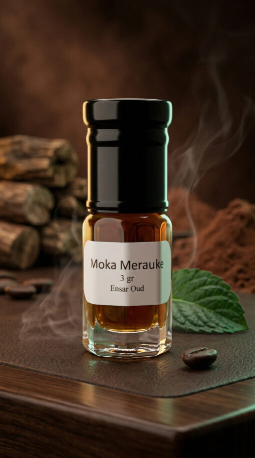 Moka Merauke offers a unique mocha-infused oud experience with a refreshing hint of peppermint. The rich mocha note, derived from wild Marokean oud, is enveloped by a robust, earthy layer of oudy incense.
