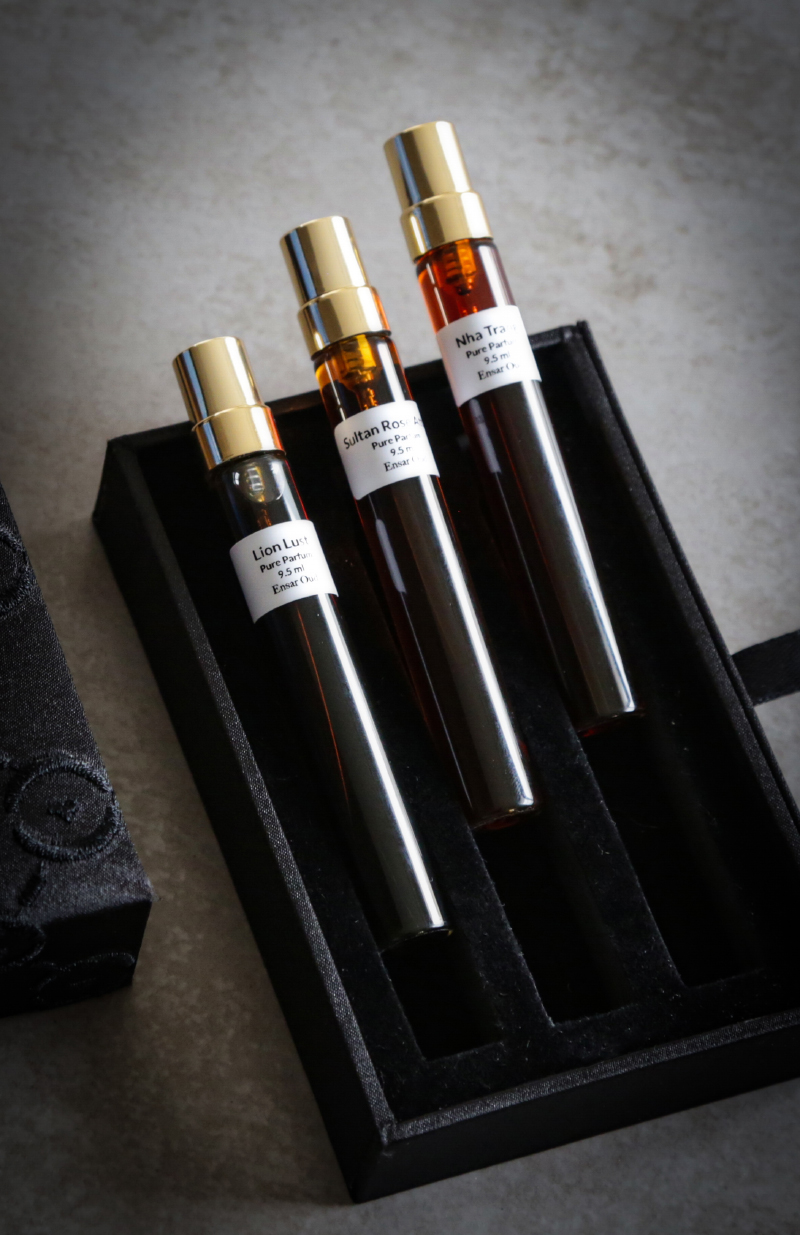 Between Lion Lust and Nha Trang, you’ve got oud upon musk upon oud and more musk, while Sultan Rose Attar was a limited edition gold plaque release of which a small portion has been reserved for this set that gives you not just an exquisite rose perfume, but one that is composed using vintage Ta’ifi rose from the 1980s!